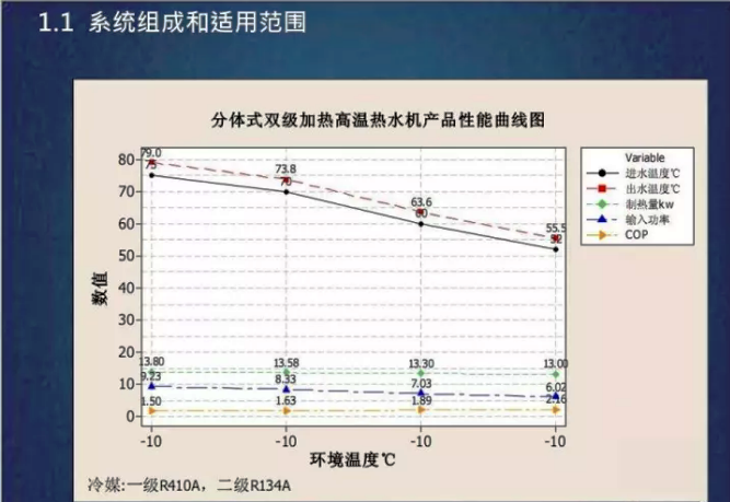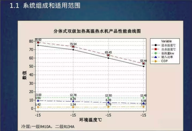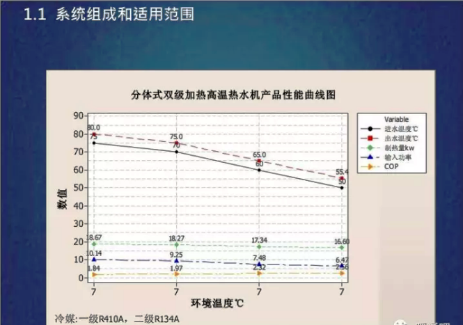 -空氣源熱泵冬季在室外較低溫度的供暖設(shè)計(jì)工況下,冷凝溫度和供水溫度有一定限制,因此,設(shè)計(jì)水溫不能過高。