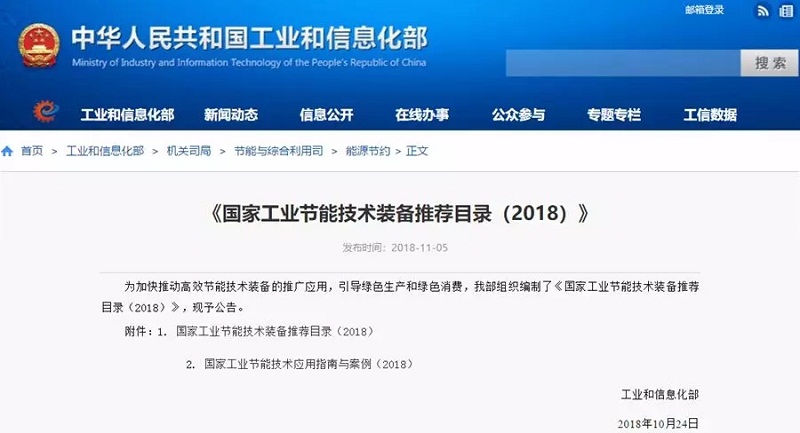 2018年11月5日,工業(yè)和信息化部發(fā)布《國(guó)家工業(yè)節(jié)能技術(shù)裝備推薦目錄(2018)》公告,其中“高溫氣源熱泵烘干系統(tǒng)節(jié)能技術(shù)、單機(jī)雙級(jí)螺桿型空氣源熱泵機(jī)組節(jié)能技術(shù)”兩項(xiàng)空氣源熱泵技術(shù)、案例成功入選《國(guó)家工業(yè)節(jié)能技術(shù)裝備推薦目錄(2018)》及《國(guó)家工業(yè)節(jié)能技術(shù)應(yīng)用指南與案例(2018)》。