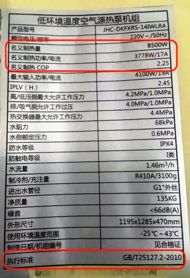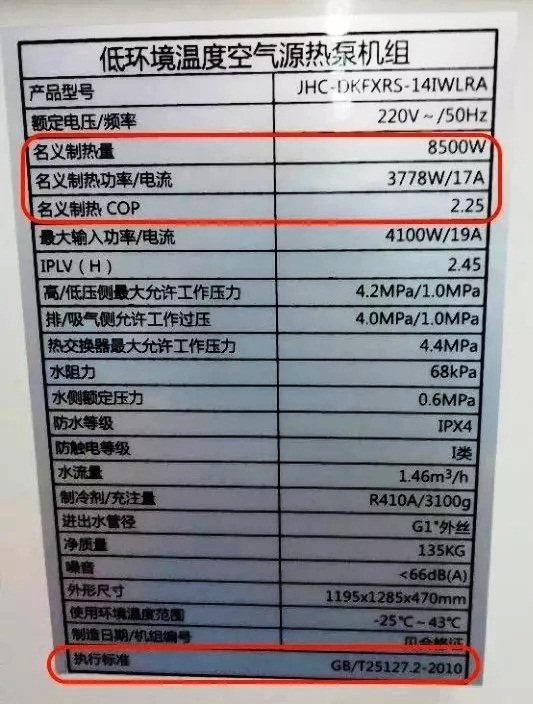 奉勸經(jīng)銷商或消費者在選用產(chǎn)品時,注意銘牌的參數(shù),標明低溫工況制熱量的,一般是空氣源熱泵采暖機組或低溫型的空氣源兩聯(lián)供機組。選擇熱泵類型非常重要,有的工程由于將熱泵類型選錯,造成長期壓縮機工作不停機,運行費用高但室內(nèi)溫度難以滿足設(shè)計要求。