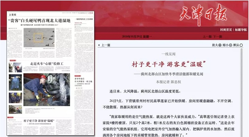天津日報和山東公共頻道:供暖用上空氣源熱泵,節(jié)能又環(huán)保!