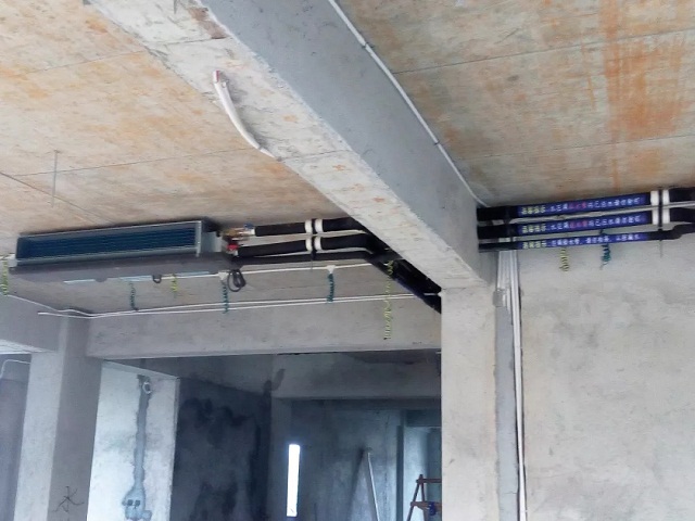 空調(diào)制冷:夏季采用家庭中央空調(diào)系統(tǒng),制冷時,控制主機通過冷熱水管連接多個末端出風口,將冷暖氣送到不同區(qū)域,來實現(xiàn)室內(nèi)空氣調(diào)節(jié)。此系統(tǒng)使用檔次高、外形好、舒適度強,可實現(xiàn)美觀典雅和舒適衛(wèi)生的和諧統(tǒng)一,是國際和國內(nèi)的發(fā)展潮流。本系統(tǒng)采用風機盤管制冷,客廳、餐廳、休閑區(qū)、臥室、書房等區(qū)域設置風機盤管。