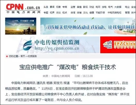 中國(guó)電力新聞網(wǎng):推廣“煤改電”糧食烘干
