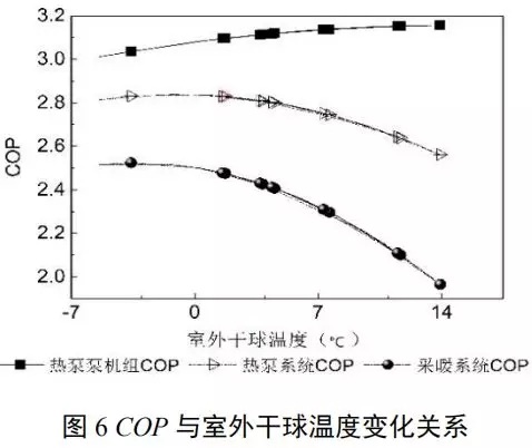 如圖6所示,室外干球溫度與系統(tǒng)性能指標總結為以下3點: