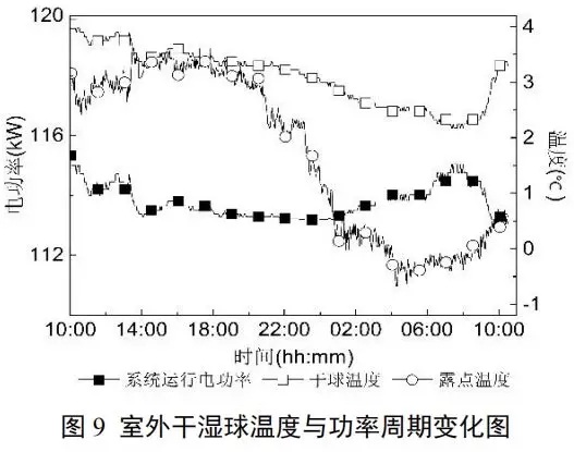 如圖9所示,在結霜工況下,系統(tǒng)供電總功率維持恒定,在小幅度范圍內(113kW-115kW)正常浮動。