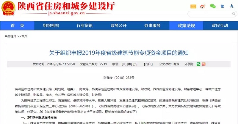 2018年8月15日,陜西省住房和城鄉(xiāng)建設(shè)廳、陜西省財(cái)政廳印發(fā)《關(guān)于組織申報(bào)2019年度省級建筑節(jié)能專項(xiàng)資金項(xiàng)目的通知》,指出2019年度省級建筑節(jié)能資金重點(diǎn)支持綠色生態(tài)技術(shù)應(yīng)用項(xiàng)目,包括中深層地?zé)崮懿膳夹g(shù)等,綠色生態(tài)城區(qū)建設(shè)試點(diǎn)示范;建筑能效提升,包括農(nóng)村建筑節(jié)能改造技術(shù)、農(nóng)村清潔能源取暖技術(shù)、低能耗建筑技術(shù);技術(shù)集成創(chuàng)新,上述兩個類別項(xiàng)目實(shí)施中,聚焦新技術(shù)新產(chǎn)品推廣所面臨的問題,同步開展工程應(yīng)用研究的項(xiàng)目。申請“先建后補(bǔ)、以獎代補(bǔ)”等方式的綠色建筑項(xiàng)目、省級建筑節(jié)能資金支持項(xiàng)目,應(yīng)嚴(yán)格按照經(jīng)審查的工程方案、申報(bào)方案進(jìn)行施工并完成全部技術(shù)內(nèi)容且竣工驗(yàn)收合格。
