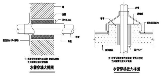 管道穿墻、穿樓板時安裝好護(hù)套,打發(fā)泡劑填充。