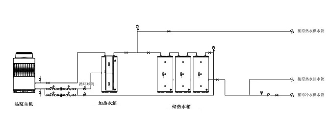 更為重要的是,在系統(tǒng)層面有著更為突出的節(jié)能效果:整個系統(tǒng)采用模塊化承壓水箱,憑借閉式系統(tǒng)熱水利用率高,隨用隨補等特點,系統(tǒng)熱水儲量僅為傳統(tǒng)熱泵系統(tǒng)的1/3左右,原廠生產(chǎn)的水箱保溫性能也遠優(yōu)于普通開式水箱,因而系統(tǒng)散熱損失大大降低;承壓水箱在供水時也無需對熱水進行增壓,系統(tǒng)中水泵的電耗也大大減少。系統(tǒng)綜合能耗較傳統(tǒng)熱泵系統(tǒng)可以降低30%,每年可以節(jié)省一筆可觀的運行費用。