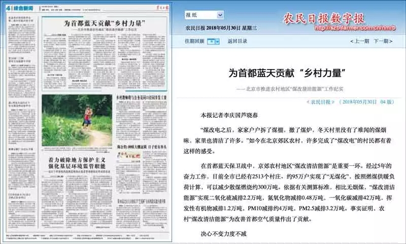 在首都藍天保衛(wèi)戰(zhàn)中,京郊農村地區(qū)“煤改清潔能源”是重要一環(huán)。經(jīng)過5年的奮力工作,目前全市已經(jīng)有2513個村莊、約95萬戶實現(xiàn)了“無煤化”,按照燃煤供暖負荷計算,可以減少散煤燃燒約300萬噸。依據(jù)有關測算標準,相比無煙煤,“煤改清潔能源”實現(xiàn)二氧化硫減排2.2萬噸,氮氧化物減排0.48萬噸,一氧化碳減排42萬噸,揮發(fā)性有機物減排1.2萬噸,PM10減排約4萬噸,PM2.5減排3.2萬噸。事實證明,農村“煤改清潔能源”為改善首都空氣質量作出了貢獻。