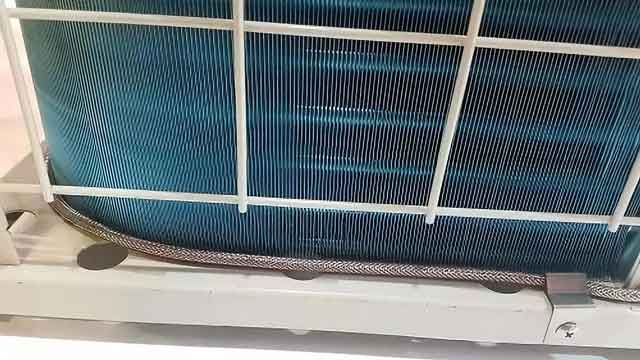 凡是大廠家生產(chǎn)的空氣源熱泵產(chǎn)品都是帶有接水盤的,而且接水盤附近都有一個伴熱帶。在除霜的時候會有大量的化霜水產(chǎn)生,如果不及時排盡且沒有接水盤導流的話,就會直接灑落在地面?諝庠礋岜脵C組每一個蒸發(fā)器下面都有一個接水盤,它的作用就是把化霜水接住后導出來。
