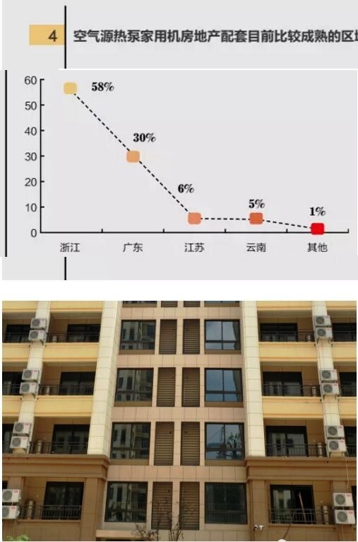 因此,浙江省目前也成為了空氣源熱泵行業(yè)配套最為火熱的地區(qū),占據了國內空氣源熱泵家用機配套項目相當比例。除此之外,在江蘇、安徽、上海、北京等地,有關于房地產轉型升級、推動建筑綠色發(fā)展的政策也都相繼出臺,為樓盤配套的發(fā)展提供了有力的政策背書。