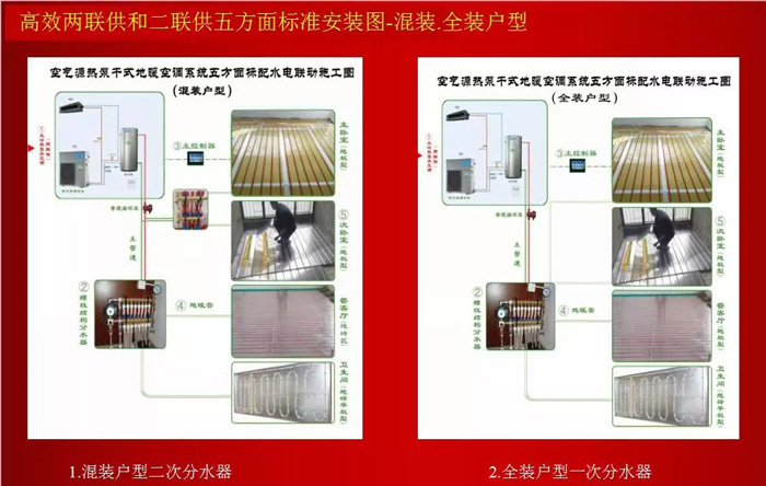 1)空氣源水系統(tǒng)+高效水地暖末端系統(tǒng)(臥室快裝電地暖),空調(diào)地暖兩聯(lián)供方案最優(yōu)!