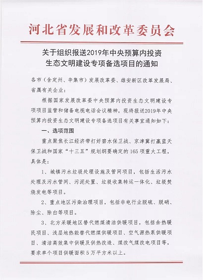 文件名稱:《關(guān)于組織申報(bào)2019年中央預(yù)算內(nèi)投資生態(tài)文明建設(shè)專項(xiàng)項(xiàng)目的通知》