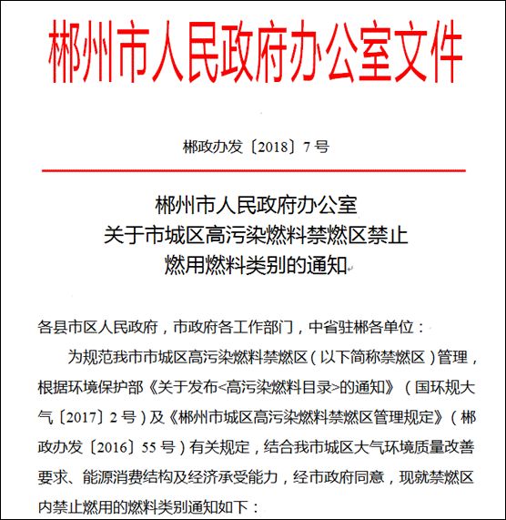 近兩年郴州市對環(huán)保很重視,陸續(xù)出臺了相應的政策,推動煤改清潔能源。今年年初,郴州市人民政府辦公室發(fā)布《關于市城區(qū)高污染燃料禁燃區(qū)禁止燃用燃料類別的通知》(郴政辦發(fā)〔2018〕7號),提出禁燃區(qū)禁止燒煤,在禁燃區(qū)城市燃氣管網(wǎng)覆蓋范圍內新建、擴建的燃燒設施,應當使用電力、空氣源、天然氣等清潔能源。隨后,郴州市區(qū)掀起了大規(guī)模的禁煤行動,所有工廠、煤礦、賓館、酒店等場所都不讓燒煤,環(huán)保部門經常會到一線進行排查,一旦發(fā)現(xiàn)便勒令進行整改,沒有按照要求改造則不能開工或運營。