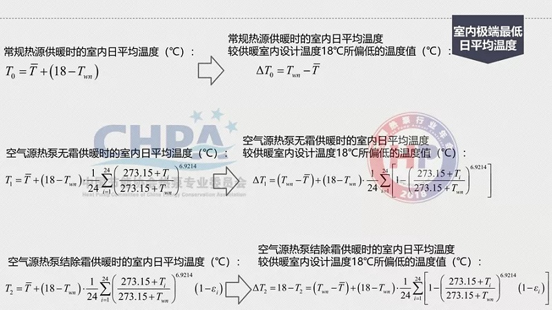 那么,怎么由18℃降到13℃?原因是在統(tǒng)計(jì)規(guī)定室外計(jì)算溫度的時(shí)候,已經(jīng)有了不保證5天的室內(nèi)空氣質(zhì)量。在這樣的情況下,它的偏差就比較大了。其中,室內(nèi)日平均溫度不保證18℃的條件是熱泵無霜制熱量在經(jīng)過結(jié)除霜修正后的實(shí)際制熱量衰減至低于維持室內(nèi)溫度18℃的建筑需熱量。