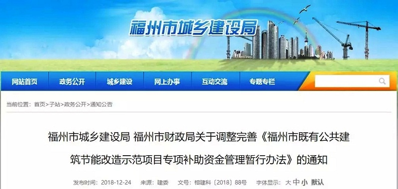福州市城鄉(xiāng)建設局 福州市財政局關于調整完善《福州市既有公共建筑節(jié)能改造示范項目專項補助資金管理暫行辦法》的通知